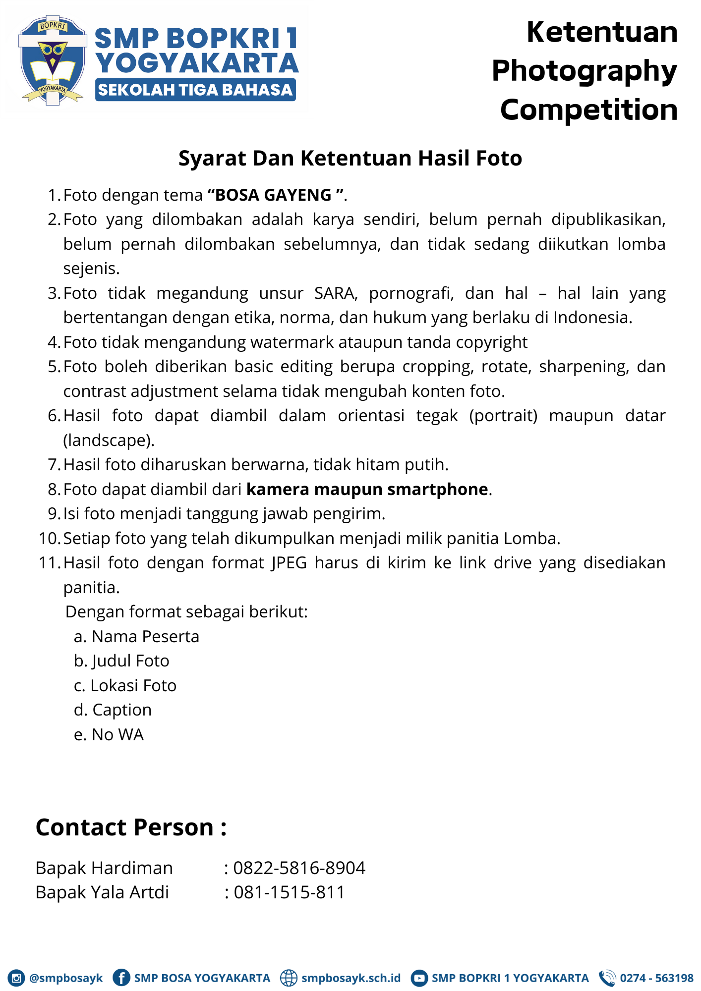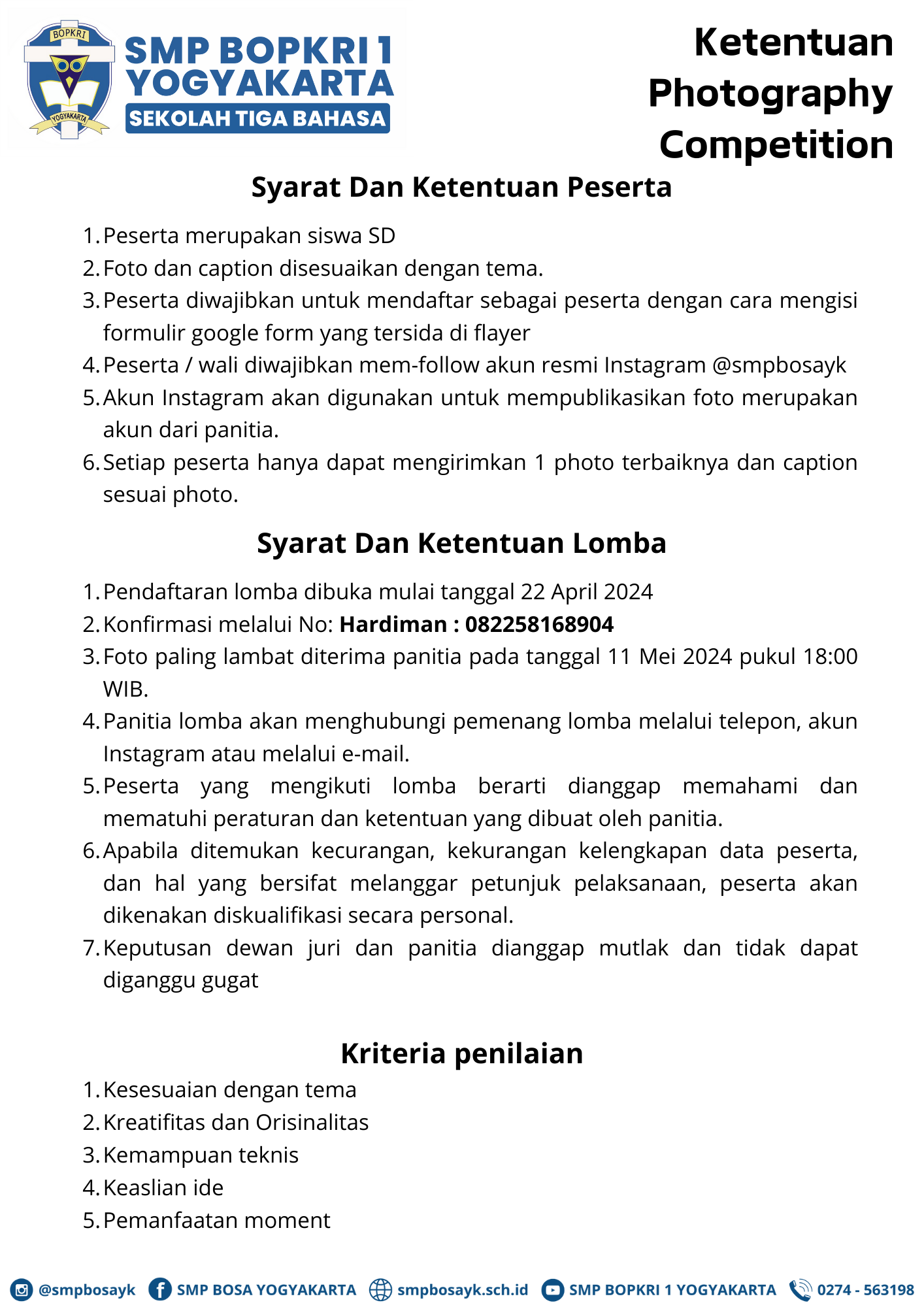 Home Pengumuman BOSAFEST 2024 BOSAFEST 2024 SMPBOSA Pengumuman 24 April 2024 Dibaca 1087 kali Foto: BOSAFEST 2024 Berita Sebelumnya PERAYAAN PASKAH SMP BOPKRI 1 YOGYAKARTA Berita Selanjutnya UPACARA BENDERA AWAL TAHUN AJARAN 2024/2025